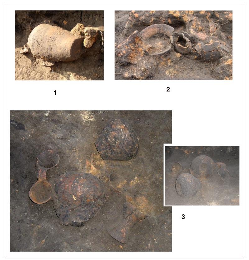 Рис. 13. Посудини, розставлені перед спаленням жител на поселенні Коломийців Яр.