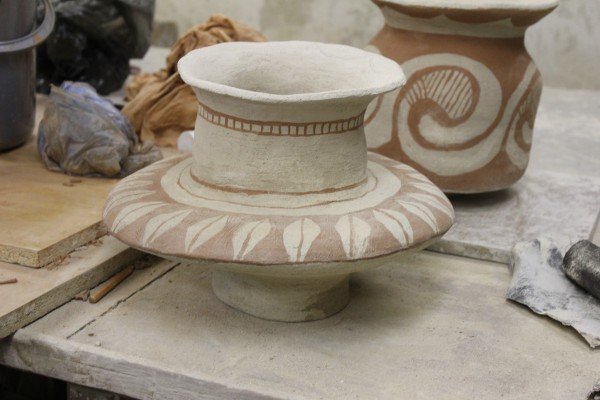 Після того, як необхідні висота і контур форми були досягнуті, вироби просушувалися в закритому великому ящику до придбання ними твердого стану. Просушка навіть невеликих виробів вимагає декількох днів.
