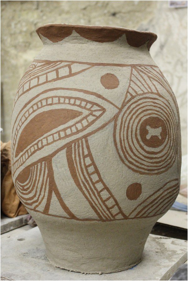Я, звичайно, знала про теорію виготовлення великих горщиків за допомогою мішка з піском, якому можна було надати задуману форму, але мною він не застосовувався. На виготовлення найбільшої вази у мене пішло більше тижня, звичайно я працювала не цілодобово. При цьому не можна було допустити, щоб глина майбутнього горщика пересихала, для цього в кінці кожного робочого дня обгортала зроблене вогким простирадлом з тим, аби вологи вистачило до наступного етапу роботи. Треба було слідкувати за формою виробу із-за можливої деформації, це все ж таки сталося, коли я виготовляла вазу з чітко окресленим ребром по тулобу, хоча мені і вдалося відтворити вибрану форму. Тобто речі між етапами роботи мали знаходитись у стані «абсолютного» спокою. Взагалі дуже важко досягти балансу на цьому, основному етапі роботи, бо в процесі виріб потребує підсушування, щоб не осідали стінки, і тільки після цього можна продовжувати подальше нарощування стінок виробу.
