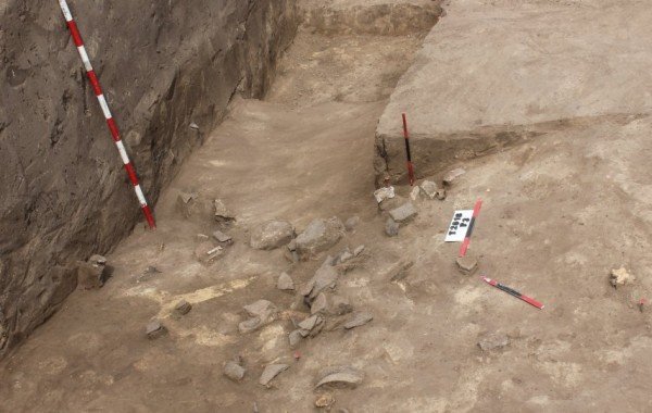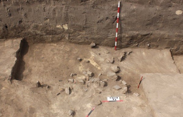 Рис.4. Трипілля 2018, шурф 3. Скупчення знахідок на схилі давнього котловану