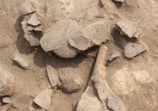 У його заповненні виявлено сотні фрагментів кісток тварин, давні знаряддя праці, та значну кількість фрагментів посуду трипільської культури. Виявлено наступні групи керамічних виробів: посуд із заглибленим орнаментом, посуд з мальованим орнаментом, кухонний посуд (рис.2-3). Вдалося зібрати деякі розвали. Привертає увагу значна кількість мальованого посуду, що можливо пов’язати з особливістю археологізації такого об’єкту, як котлован, яка була відмінною від цього процесу для звичайних жител.