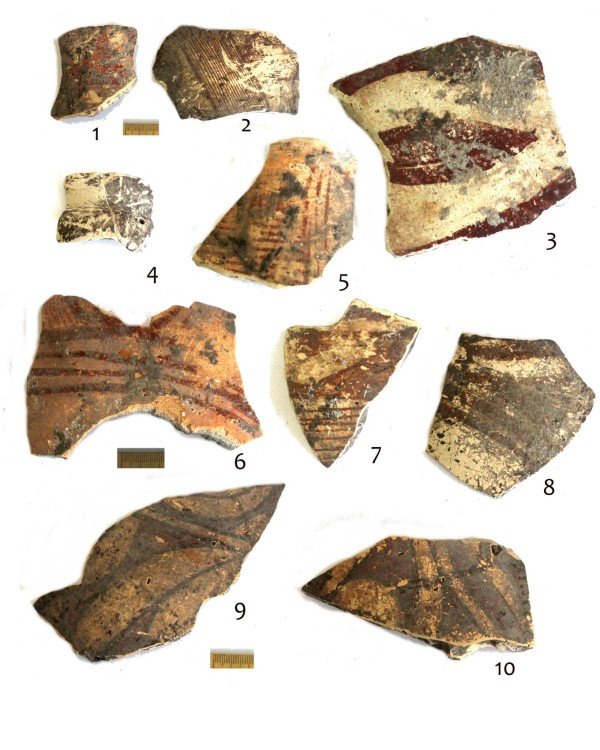 Рис.7. Трипілля 2018. Знахідки з шурфа 3. Фрагменти керамічного посуду із мальованим орнаментом