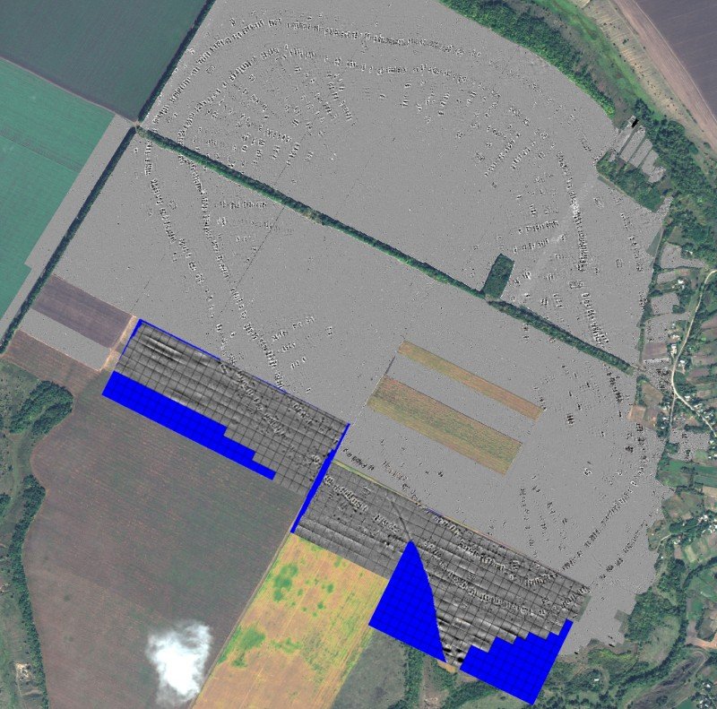 At Nebelivka, the Durham team used Bartington Grad 601-2 dual sensor fluxgate gradiometers to cover a total area of 286ha over 4 visits totalling 38 person-weeks. The vast majority of anomalies relate to burnt, partly burnt or unburnt structures, as well as soil-filled pits and ditches.