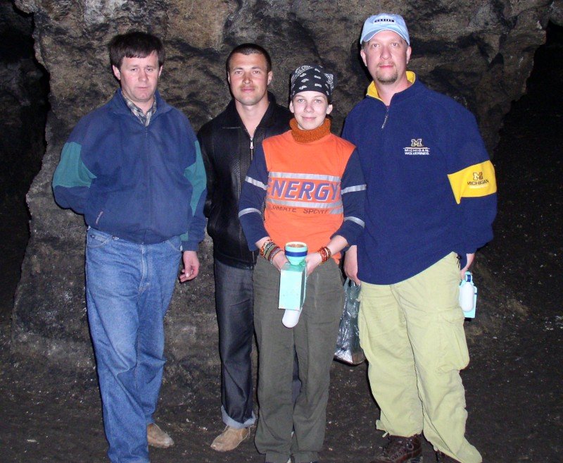 First from the left – Mykhailo Sokhatsky, director of Borschiv Museum, last to the right – Alex Nikitin. Verteba cave, 2005