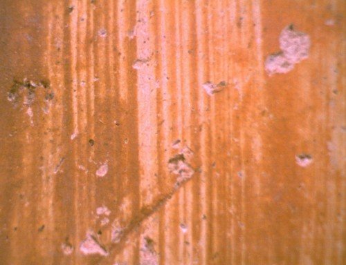 Рис. 5. Поверхня фрагмента керамічного вироба трипільської культури, вкрита ангобом з поселення Небелівка