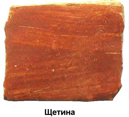 На думку спадає щетина з кабана. Найбільш цінується щетина зі спинної ділянки. Вона товста, пряма, пружна й може досягати в довжину до 140 мм. З неї трипільські майстри могли робити пласкі пензлі для нанесення ангобу-тла. Щетина використовується переважно в олійному живописі. Такі пензлі відрізняються особливою пружністю і швидко вбирають фарбу. Тобто вони могли добре утримувати й важкий ангоб. Пензель зі щетини показав найкращі результати (рис. 6).